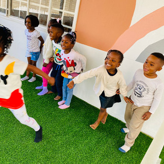 Our physical wellbeing lesson was a whole lot of fun. We guided the children to stand leaning on the wall. We explained the rules of the game: one player will be the bassist. The bassist can only walk, while the other players can run away. If the bassist catches someone, that player also becomes a bassist. The game continues until all the players have turned into bassists.